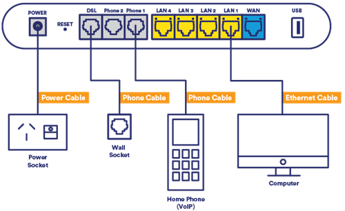 - It’s time for your phone. With an nbn® connection, you’ll plug your home phone into the ‘Phone 1’ port on your modem - not the wall socket.